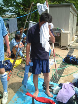 試合終わって水分補給 |